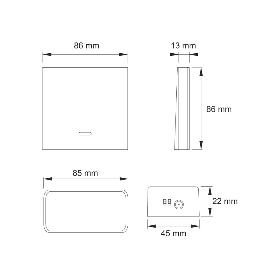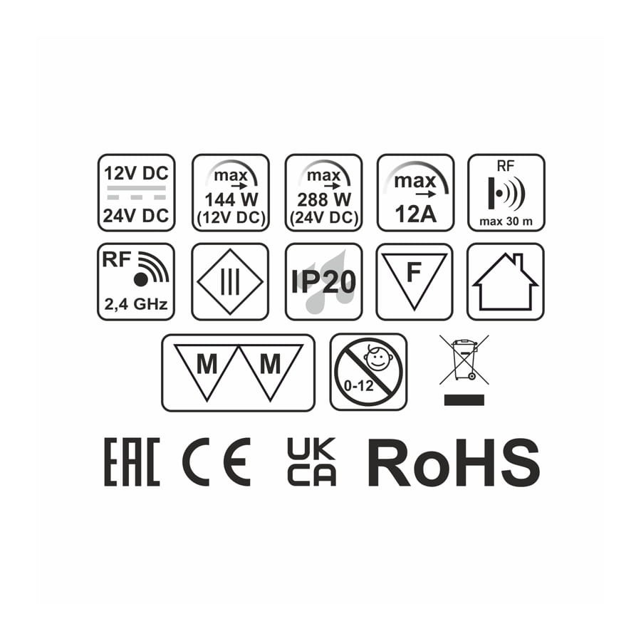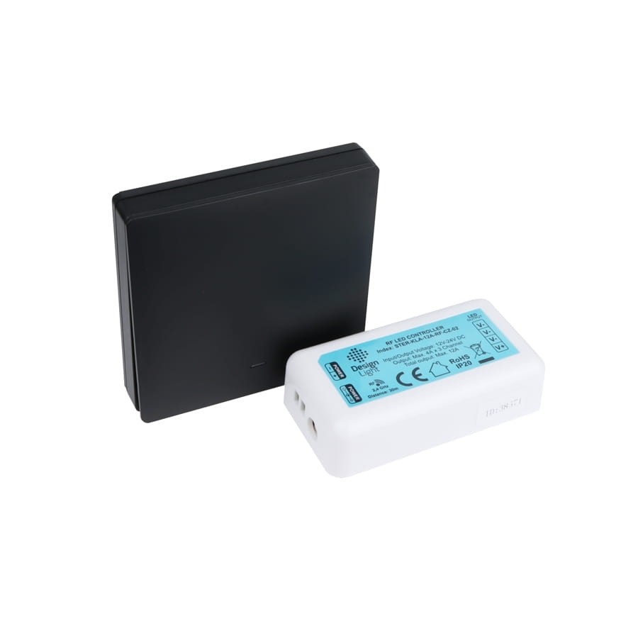 W zestawie z wyłącznikiem klawiszowym RF o zasięgu max. do 30m jest sterownik do oświetlenia jednokolorowego MONO LED.