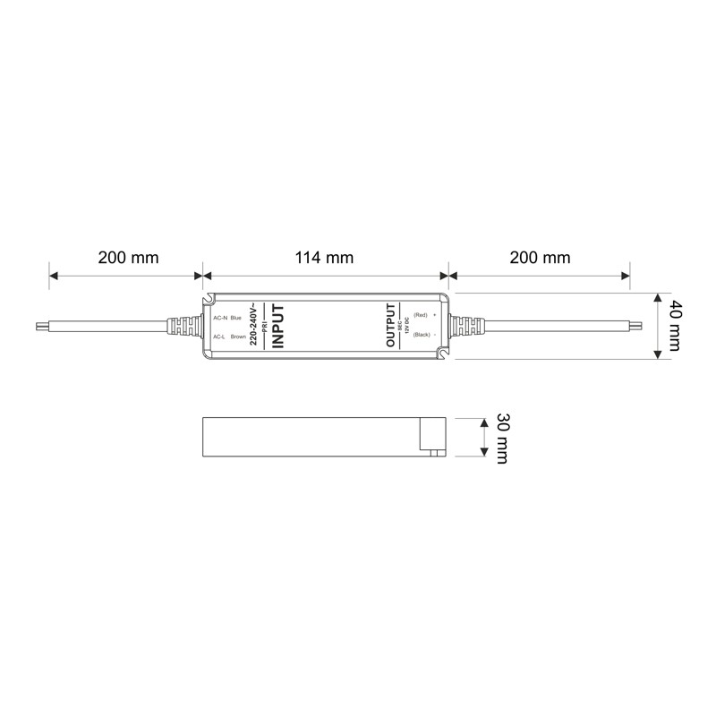 Wyposażony jest w izolowane przewody wejściowe i wyjściowe o długości 20 cm