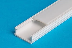 Profile wytłaczane są z tworzywa o stosunkowo niskiej gęstości, co zapewnia elastyczność i możliwość aplikacji nie tylko do prostych odcinków wykończeń ale także łuków. Idealne do oświetlenia witryn sklepowych, ciągów komunikacyjnych, itp.